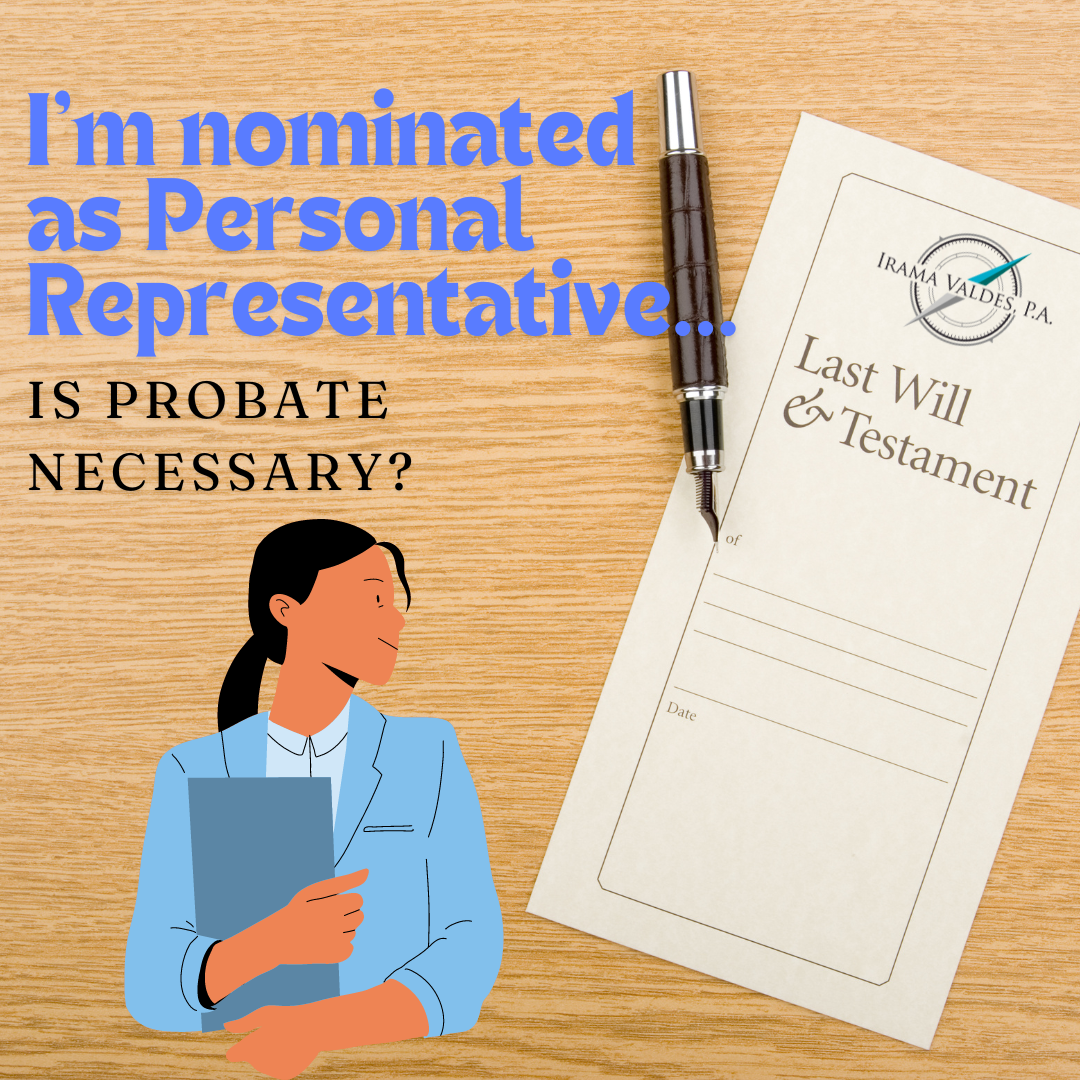 Unfortunately, the answer is “No.” Being named as a Personal Representative (also known as an executor or administrator) in a will does not avoid probate.